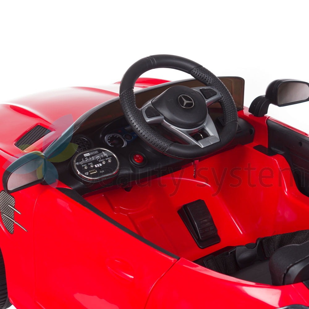 Nasz Dziecięcy fotel fryzjerski Mercedes jest wyposażony w klakson i światła.