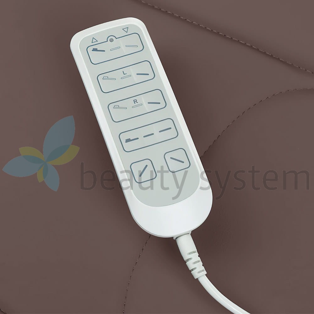 Fotel Mazaro BR-6672A wyposażony jest w pięć siłowników elektrycznych, które umożliwiają precyzyjną regulację wysokości siedziska, kąta nachylenia oparcia, podnóżków, regulację kołyski.. Sterowanie fotela odbywa się za pomocą wygodnego pilota, co pozwala na szybkie i łatwe dostosowanie pozycji fotela do potrzeb zabiegu. Dodatkowo, fotel posiada manualną regulację położenia podnóżków na boki oraz obrotu do 60stopni w obie strony, co zwiększa jego funkcjonalność.