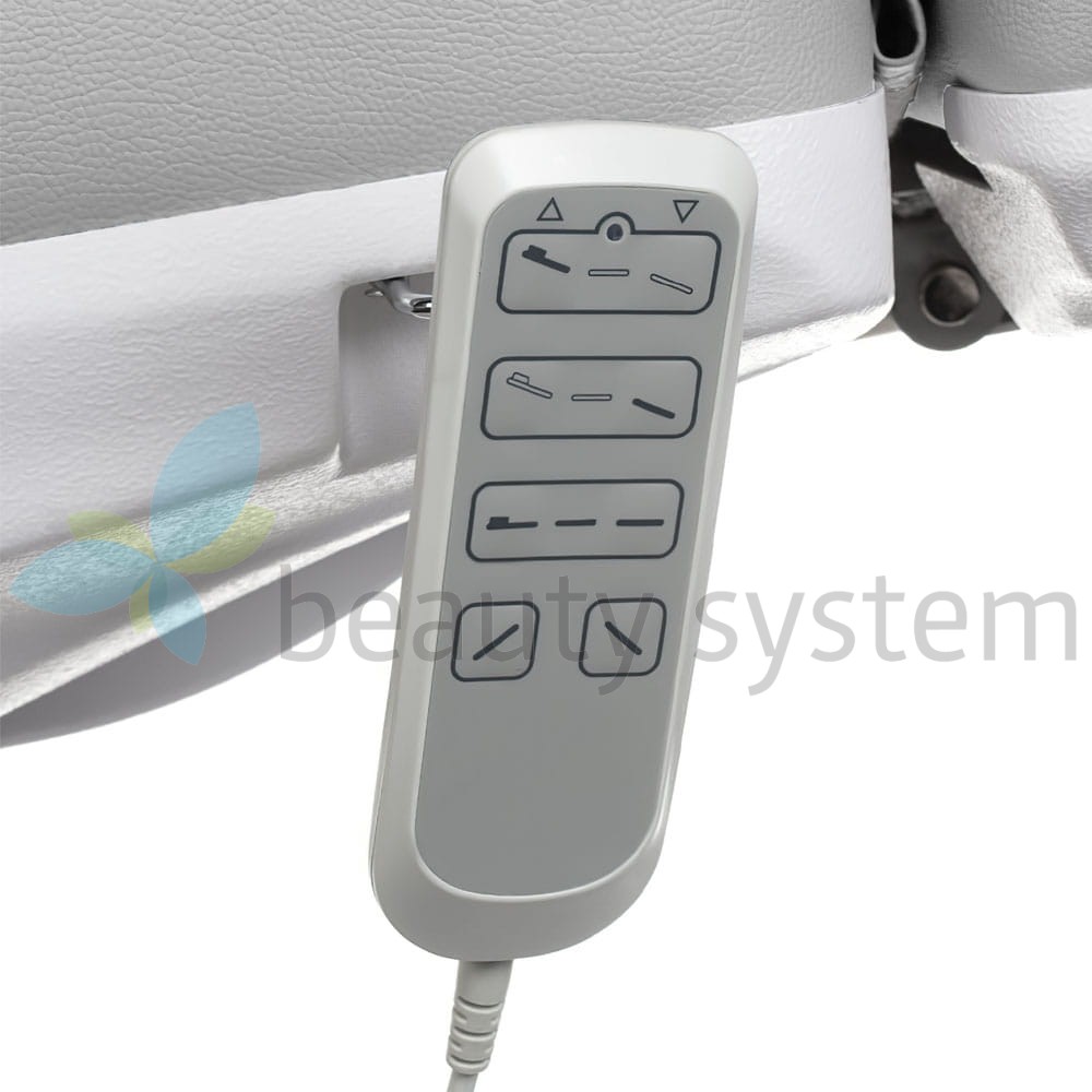 Fotel Mazaro BR-6672B wyposażony jest w trzy siłowniki elektryczne, które umożliwiają precyzyjną regulację wysokości siedziska, kąta nachylenia oparcia oraz ustawienia tzw. kołyski. Sterowanie fotela odbywa się za pomocą wygodnego pilota, co pozwala na szybkie i łatwe dostosowanie pozycji fotela do indywidualnych potrzeb zabiegu. Dodatkowo, fotel posiada manualnie regulowany podnóżek oraz możliwość manualnej regulacji obrotu, co zwiększa jego funkcjonalność i wszechstronność zastosowania.