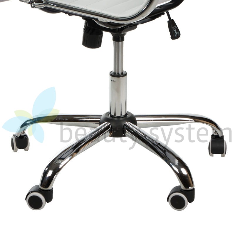 Konstrukcja fotela BX-5855 oparta jest na solidnej, metalowej ramie, co gwarantuje jego wytrzymałość i długowieczność. Stabilna podstawa wyposażona w kółka umożliwia swobodne przemieszczanie się po biurze bez konieczności wstawania z fotela. Wytrzymałe materiały użyte do produkcji tego modelu sprawiają, że fotel jest odporny na codzienne zużycie, a jego estetyczny wygląd zostaje zachowany na długie lata.