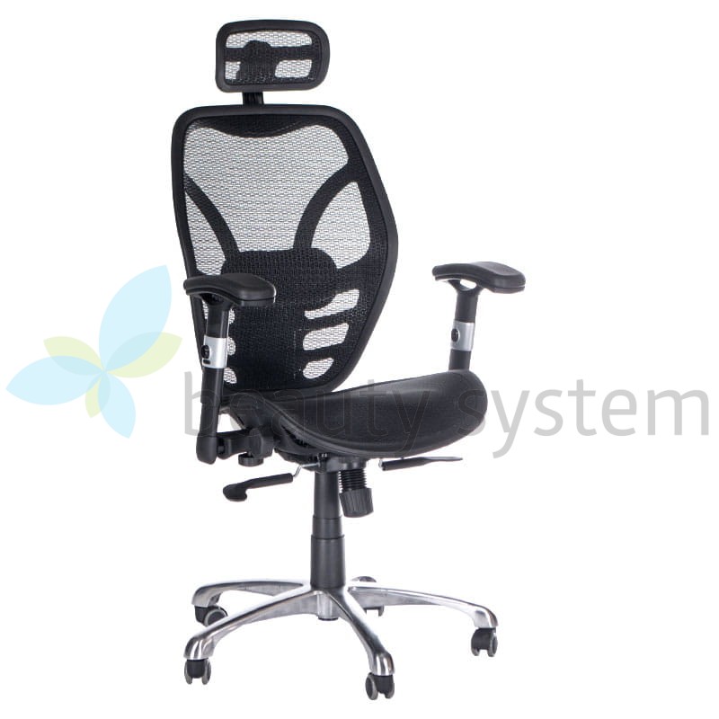 Siedzisko fotela wyłożone zostało przewiewną siatką, zapewniając jednocześnie optymalny komfort i wsparcie. Dzięki temu fotel nie tylko zwiększa wygodę pracy, ale także przyczynia się do poprawy zdrowia i samopoczucia.