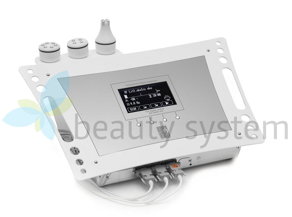RF BSH-04 to urządzenie emitujące falę elektromagnetyczną o częstotliwości radiowej, której działaniem biologicznym jest wytworzenie diatermi w obrębie skóry właściwej. W wyniku działania ciepła fibroblasty zostają pobudzone do produkcji kolagenu, a obecne włókna kolagenowe ulegają regeneracji, dając efekt liftu skóry. Urządzenie wyposażone jest w 3 głowice specjalnie dostosowane do różnych powierzchni zabiegowych: okolice oczu, twarz, szyja, dekolt, ramiona, brzuch, pośladki i uda.