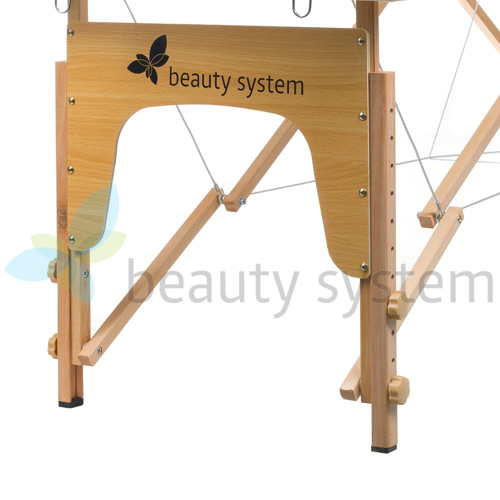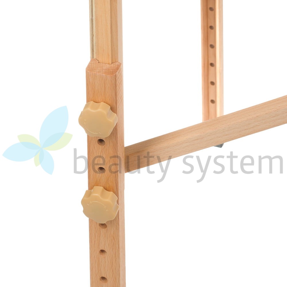 Rama stołu wykonana jest z wysokiej jakości drewna, które zapewnia stabilność i wytrzymałość konstrukcji, jednocześnie nadając mu elegancki wygląd. Stół jest wyposażony w antypoślizgowe nóżki, które gwarantują bezpieczeństwo podczas zabiegów na każdej powierzchni.