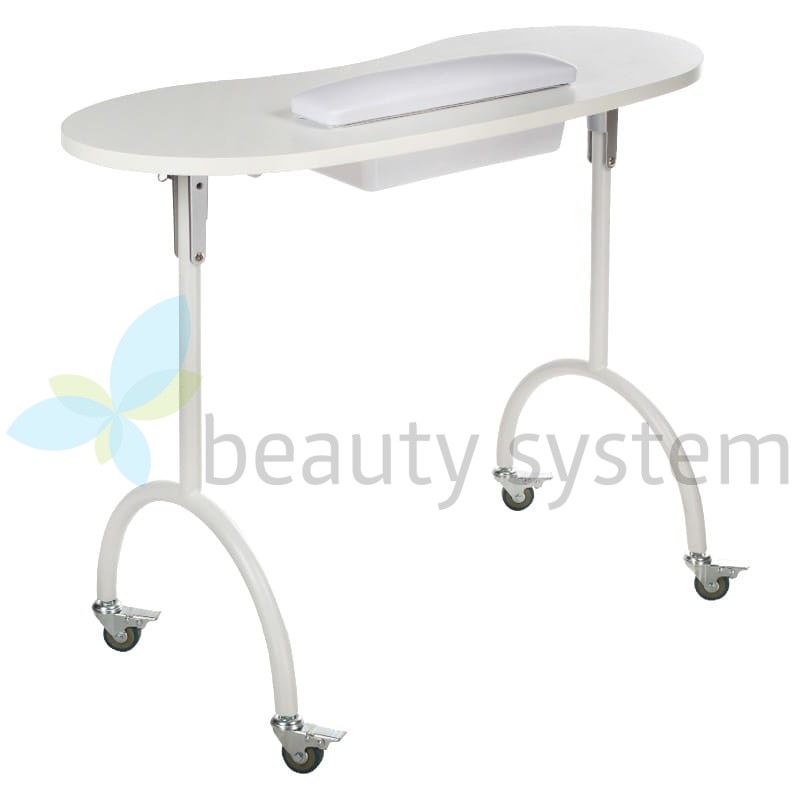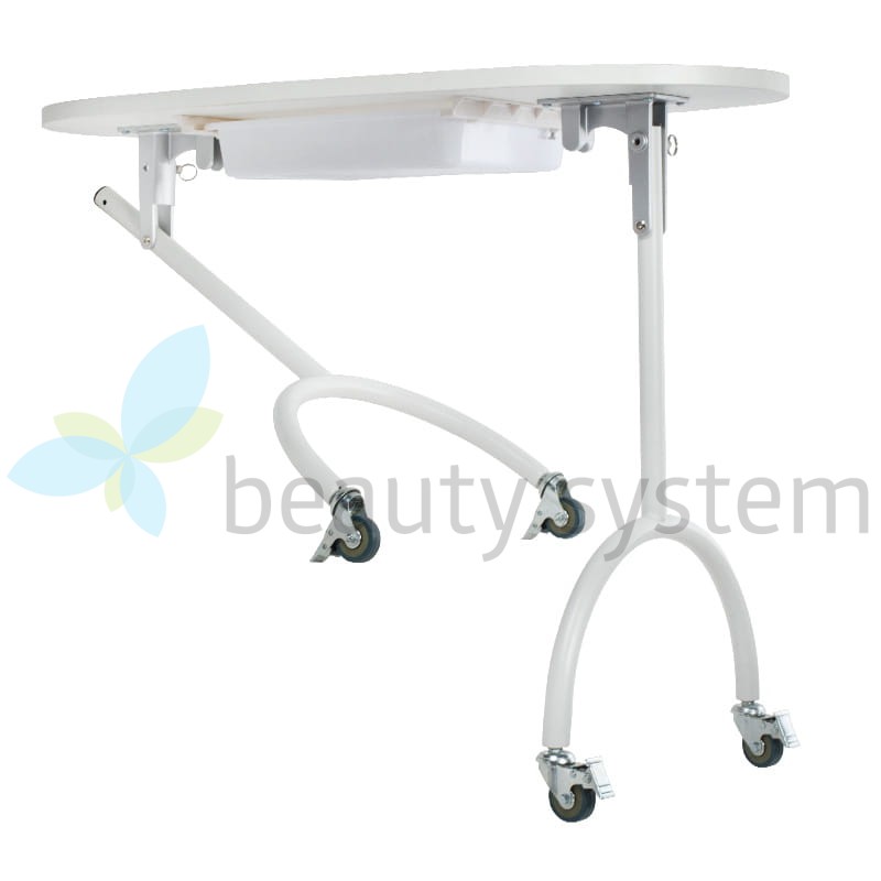 Składany stolik do manicure BD-3416 z kuwetą, sprawdzi się zarówno w domu, jak i profesjonalnym salonie kosmetycznym. Stolik posiada duży blat (100cm x 37cm), który pozwoli na swobodę i dobrą organizację pracy.