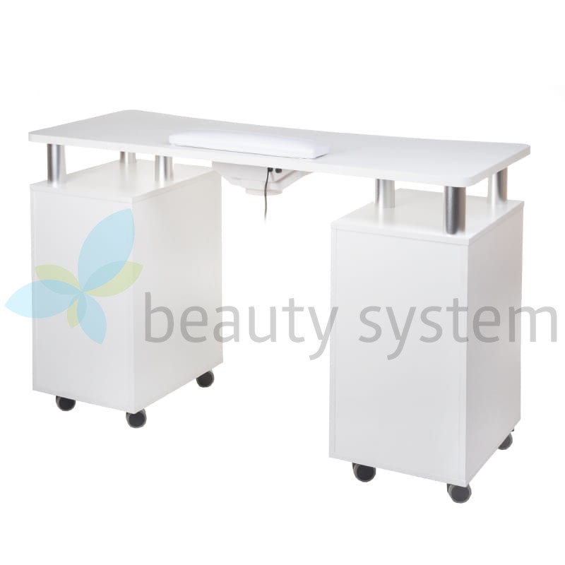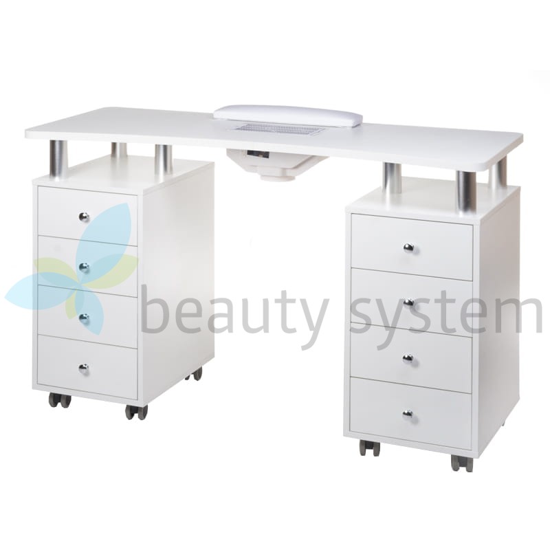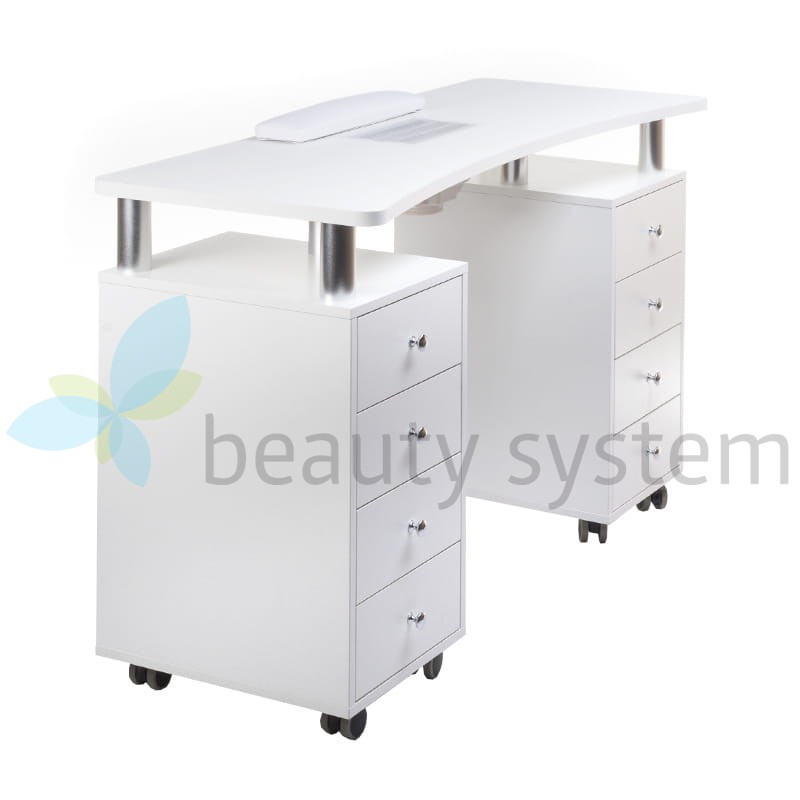 Proponujemy bardzo elegancki i funkcjonalny stolik do manicure z gotowym otworem na pochłaniacz pyłu. Meble do salonów kosmetycznych, aby zapewnić komfortowe warunki pracy, muszą być maksymalnie użyteczne. Stolik do manicure BD-3425+O jest mobilny, posiada głębokie szafki i praktyczne szuflady. Zestaw uzupełnia wygodna poduszka zabiegowa. Solidna konstrukcja, efektowny design to znak rozpoznawczy Beauty System. Wybierz stolik do manicure BD-3425+O z roczną gwarancją!