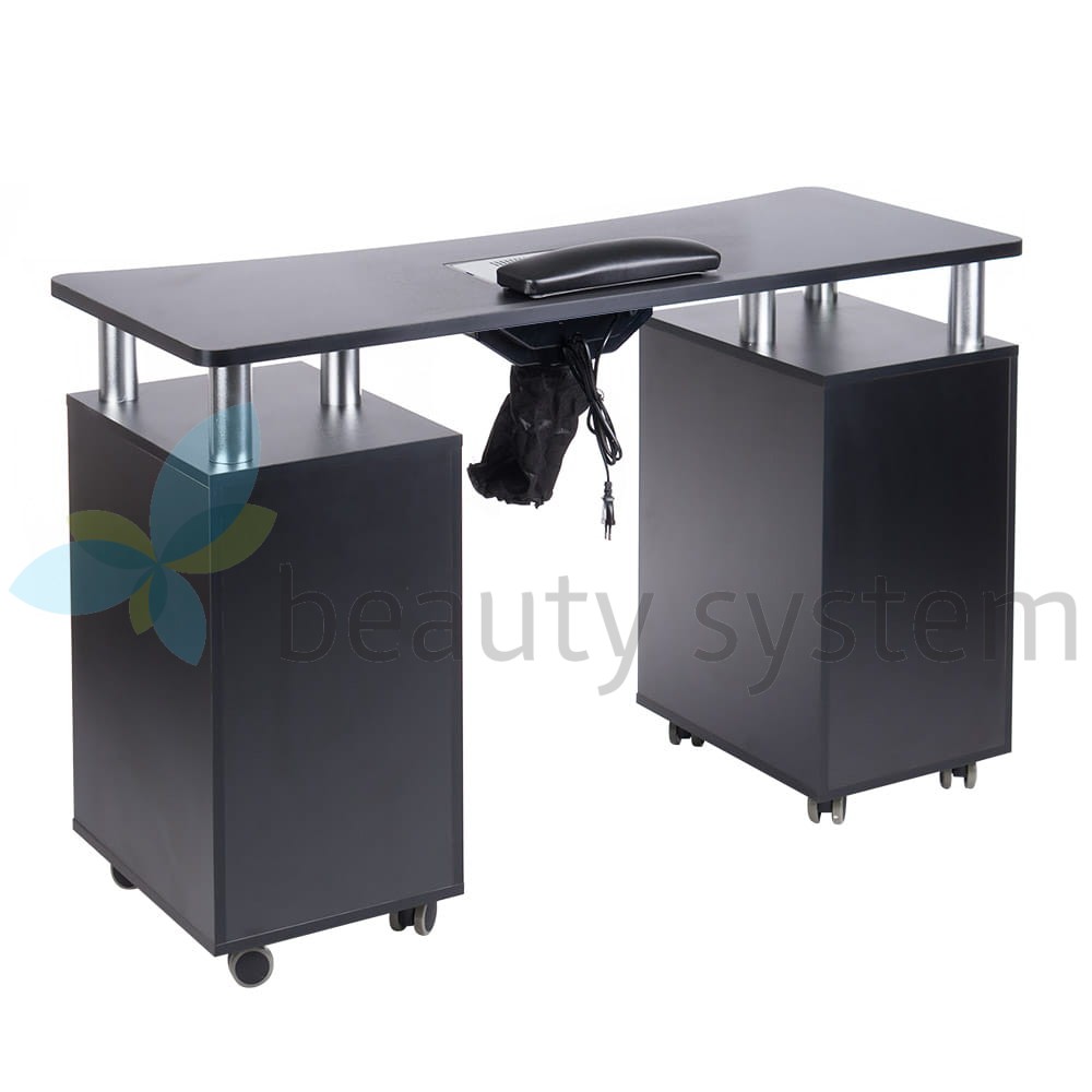 Proponujemy bardzo elegancki i funkcjonalny stolik do manicure z gotowym otworem na pochłaniacz pyłu. Meble do salonów kosmetycznych, aby zapewnić komfortowe warunki pracy, muszą być maksymalnie użyteczne. Stolik do manicure BD-3425+O  jest mobilny, posiada głębokie szafki i praktyczne szuflady. Zestaw uzupełnia wygodna poduszka zabiegowa.  Solidna konstrukcja, efektowny design to znak rozpoznawczy Beauty System. Wybierz stolik do manicure BD-3425+O z roczną gwarancją!