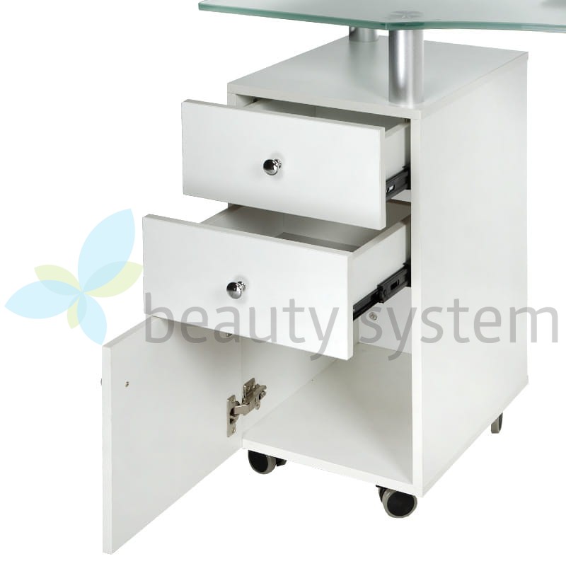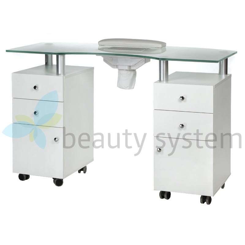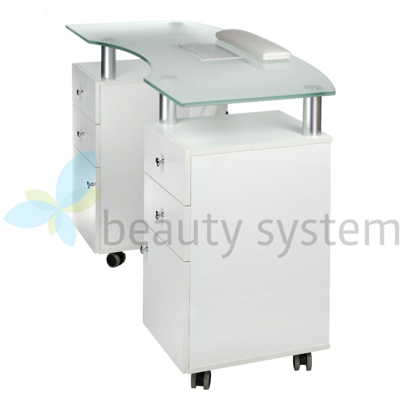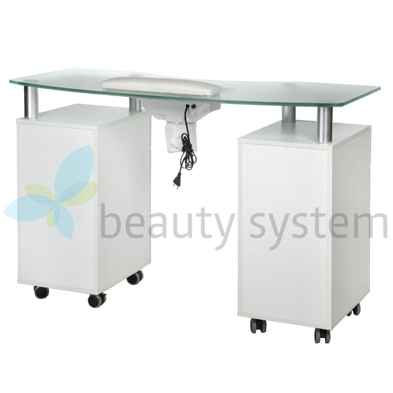 Proponujemy bardzo elegancki i funkcjonalny stolik z eleganckim szklanym czarnym blatem i gotowym otworem na pochłaniacz. Meble do salonów kosmetycznych, aby zapewnić komfortowe warunki pracy muszą być maksymalnie użyteczne. Stolik do manicure z otworem na pochłaniacz BD-3453+O jest mobilny, posiada głębokie szafki i praktyczne szuflady. Zestaw uzupełnia wygodna poduszka zabiegowa.  Solidna konstrukcja, efektowny design to znak rozpoznawczy Beauty System. Wybierz stolik do manicure z otworem montażowym BD-3453+O  z roczną gwarancją!