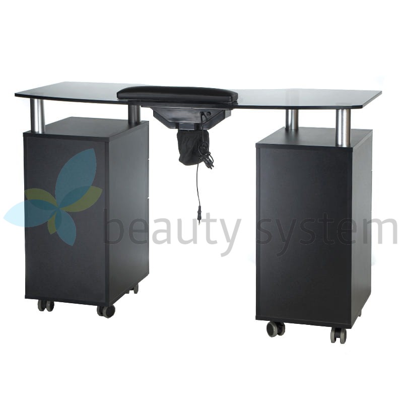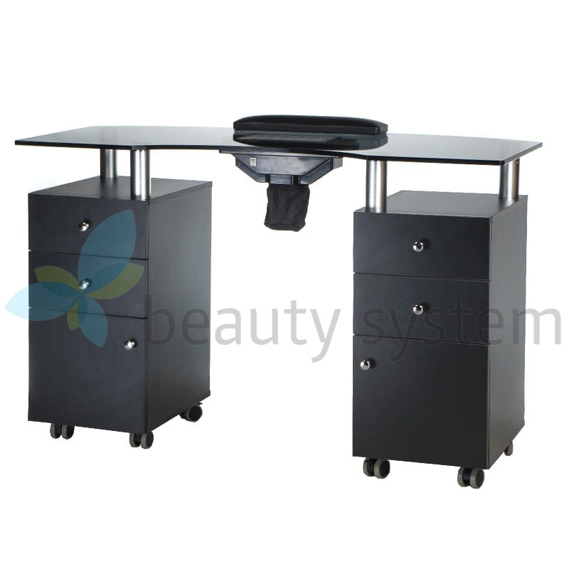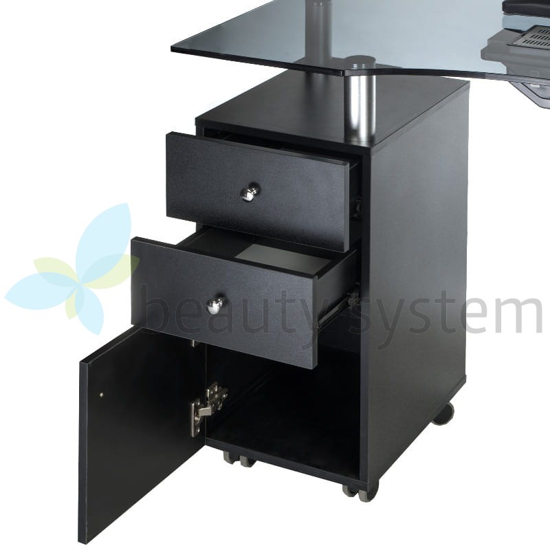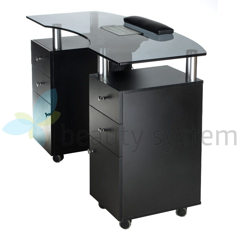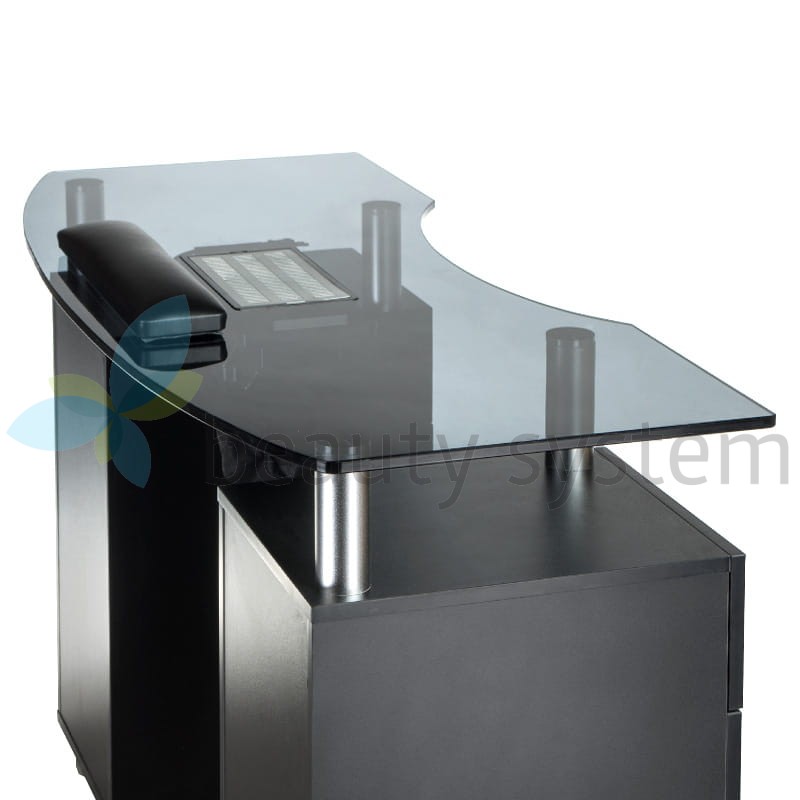 Proponujemy bardzo elegancki i funkcjonalny stolik z eleganckim szklanym czarnym blatem i gotowym otworem na pochłaniacz. Meble do salonów kosmetycznych, aby zapewnić komfortowe warunki pracy muszą być maksymalnie użyteczne. Stolik do manicure z otworem na pochłaniacz BD-3453+O jest mobilny, posiada głębokie szafki i praktyczne szuflady. Zestaw uzupełnia wygodna poduszka zabiegowa. Solidna konstrukcja, efektowny design to znak rozpoznawczy Beauty System. Wybierz stolik do manicure z otworem montażowym BD-3453+O z roczną gwarancją!