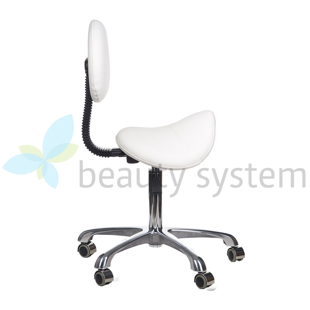 Taboret kosmetyczny BY-8373 posiada doskonale wyprofilowane zarówno siedzisno jak i oparcie. Obicie wykonane z wysokogatunkowej skóry ekologicznej łatwej w utrzymaniu czystości.