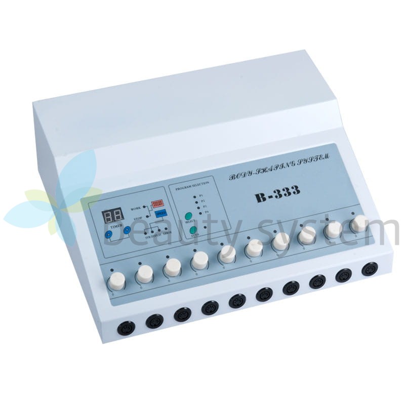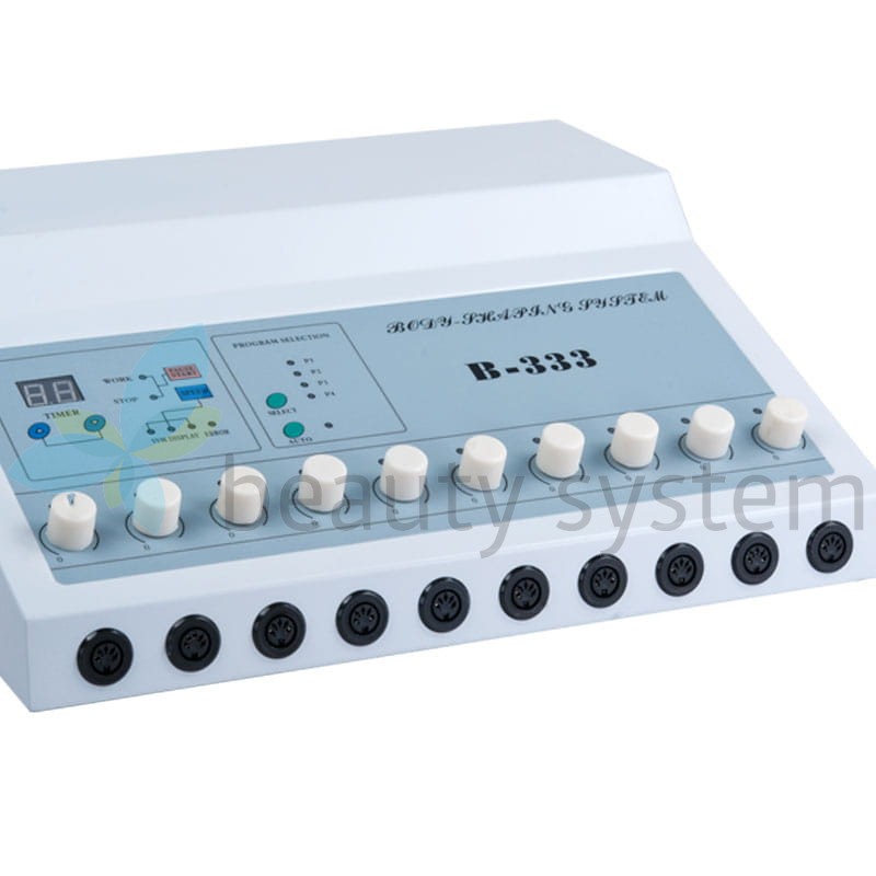 Urządzenie do elektrostymulacji BR-333 wykonuje zabieg elektrostymulacji mięśni stosowany przy redukcji cellulitu i terapiach odchudzających.